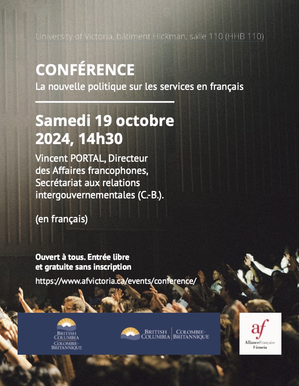 Cette conférence sera l’occasion unique pour le grand public de comprendre les tenants et les aboutissants de cette politique : Après le Québec et l’Ontario, la Colombie-Britannique est la troisième province comptant le plus de Francophones au Canada ; près de 80 000 Franco-Colombiens parlent français au foyer ; Les inscriptions au Conseil scolaire francophone ont augmenté de 24 % en dix ans.