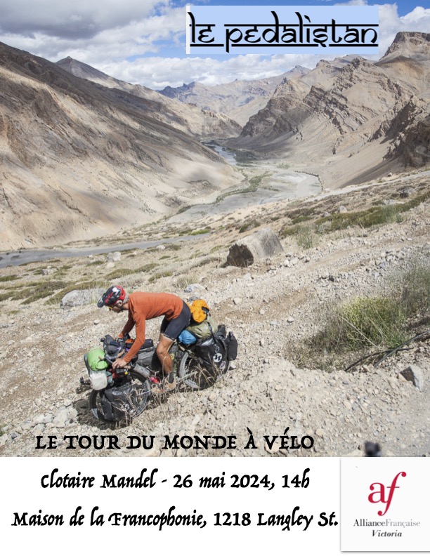 Description: Clotaire has been cycling from France for more than five and a half years now, and is now setting off across the Americas. Clo arrived in Victoria three months ago from Alaska and is taking a break to work here and let the winter pass before heading further south one week after his talk!